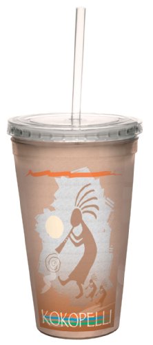 Tree-Free Greetings cc33094 Classic Southwestern Kokopelli by Mike Rangner Artful Traveler Double-Walled Cool Cup with Reusable Straw, 16-Ounce