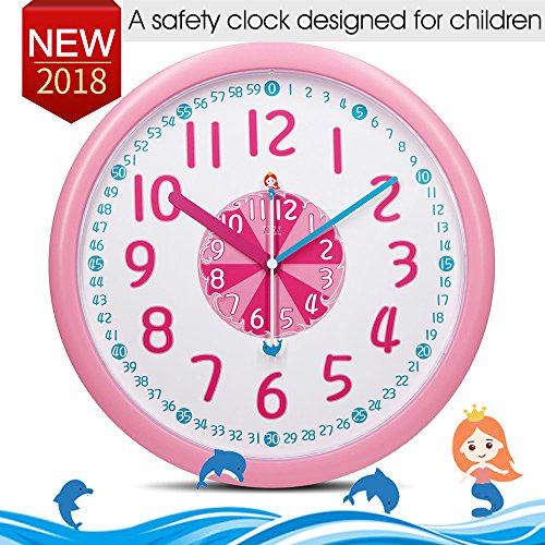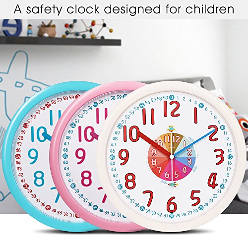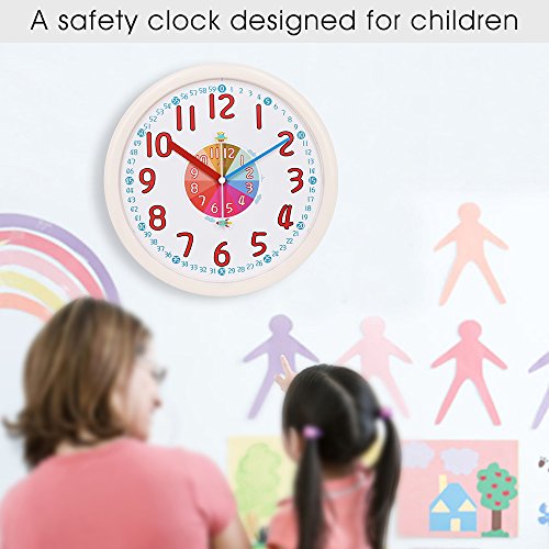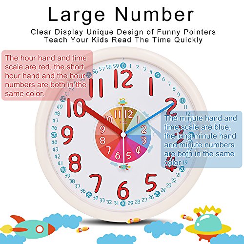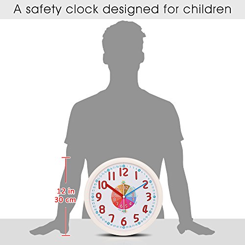 -. Title : 12" Analog Kids Wall Clock with Large and Colorful Hands,Teach Children to Learn Time,Silent and Fun Second Hands Design for Kid Bedroon/Nursery Playroom/Classroom Decorative