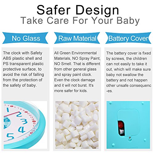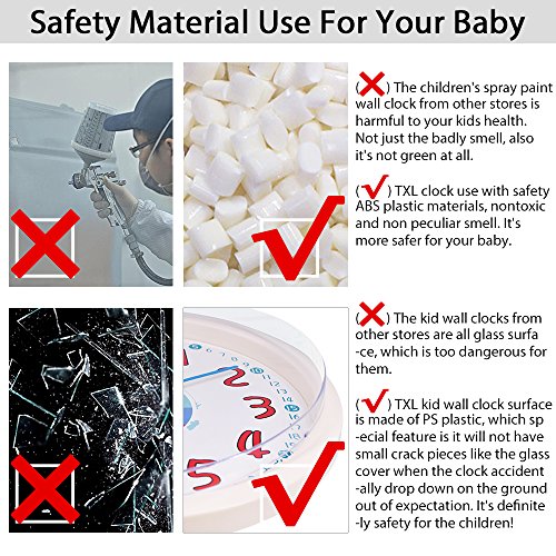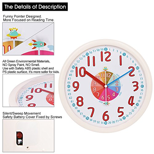 -. Feature : A Fun and Attractive Way to Learn Time - this special clock will help your child to read time easily.Analog hands with cartoon character attract the kids to read the numbers. / Easy to Read and Understand - white dial face with colorful large numbers make it easy for kids to learn hour and minute. / Colorful/Educational/Fun Hands - hour number and short hand are both in the same color,minute numbers and long hand are both in the same color,second hand with cartoon that makes easy to teach children to read time. / Brighten your kid's room with this stylish and high quality wall clock which with funny looking.Made from duarable materials, suitable for kids at all ages. / Slient non-ticking movement enusre the kids can have a good sleeping environment..Perfect as wall decor as an addition to any kid's bedroom, nursery playroom and classroom.