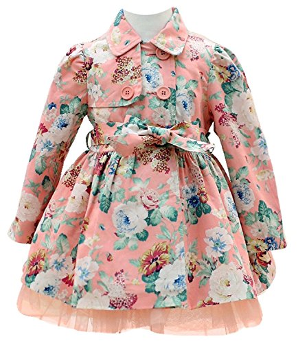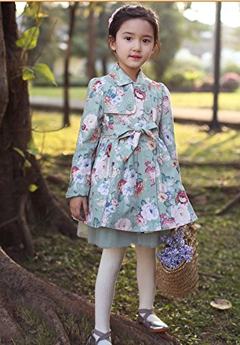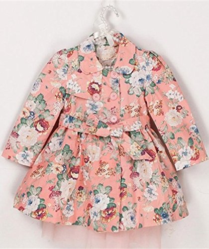 Product DescriptionLittle Girls Floral Printed Lace Bowknot Slim Fit Trench Coat Jacket Outerwear0