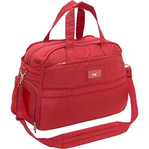 -. Feature : Its got lots of Lug staples, like a ventilated compartment for shoes or dirty clothes, a comfy, removable shoulder strap and a hidden water bottle pocket. / Has a wipeable bottom for easy cleaning and a lage strap that slips over a rolling bag handle for easy transport. / Contains a magnetic pocket right in front for easy access to magazines, documents, or other reading materials, plus another front zip pocket with soft-lined pouches for electronics, pen holders to keep you organized. / The Airbus features our two-tone material for a sophisticated appeal. / Detachable key fob.