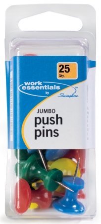 Work Essentials S7071759 Jumbo Push Pins Assorted Colored 25 Count (Pack of 4)