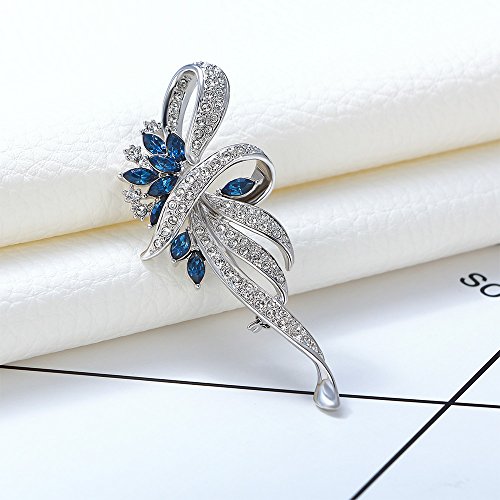 Featuring flower design, crafted in silver-toned base metal and studded with clear crystals and blue zirconia to lighten it up, this brooch is charming decoration for any women.