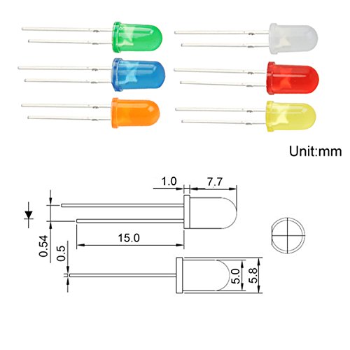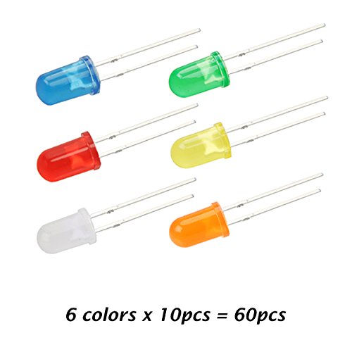 Chanzon 60 pcs(6 colors x 10 pcs) 5mm LED Diode Lights Arduino Assored Kit Pack (Diffused Round DC 3V 20mA ) Lighting Bulb Lamps Electronics Components 5 mm Light Emitting Diodes Parts