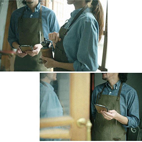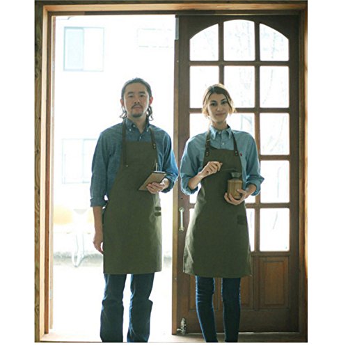 Big-sized Stylish Durable Coffee Chef Workhop Apron with Pocket Pen Holder Adjustable Waist Ties - Kitchen Cooking Baking Grilling Apron for Bartender Waitress HSW053
