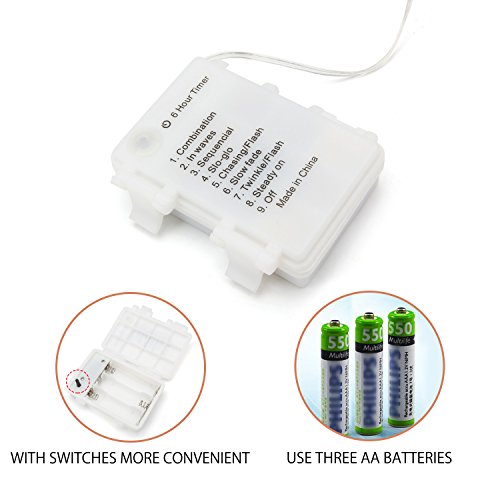 - Battery-powered, requires 3 AA batteries (not includ) instead of charging plug.Perfect for your Decoration for your Window,Xmas tree, wardrobe, table, nursery room, garden party, fence, patio, Christmas day, New Year Day etc