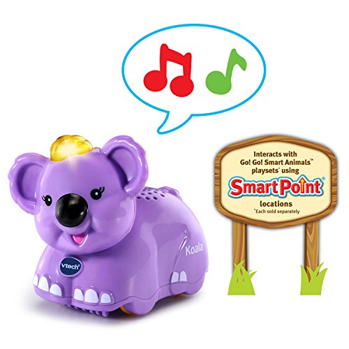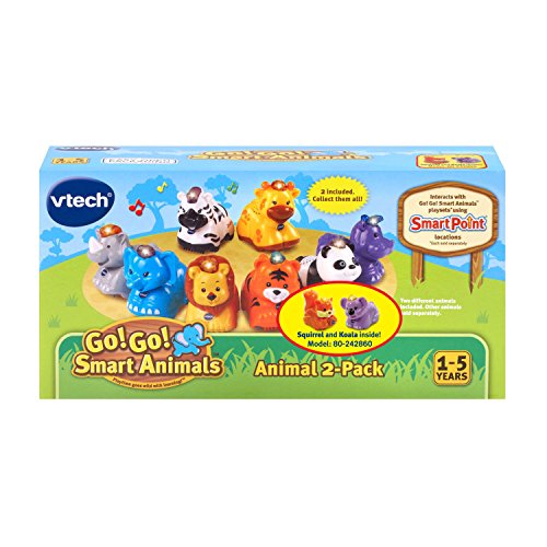 -. Binding : Toy -. Brand : VTech -. EAN : 3417762428602 -. Feature : Press the light-up button on each animal to activate music, sounds and phrases; learn about the animals, letters and more through pretend play / Perfectly sized for little hands; each electronic animal teaches a letter and the name of the animal / Requires a total of 4 AAA batteries (2 for each animal) which are included for demo purposes only, replace new ones for regular use. Automatic power-off saves batteries; intended for ages 1 to 5 years / This online exclusive Go! Go! Smart Animals 2-pack includes Katie the Koala and Steve the Squirrel / Each animal also responds with music, sounds and phrases to SmartPoint locations on Go! Go! Smart Wheels and Go! Go! Smart Animals playsets (each sold separately) -. IsAdultProduct : 0 -. Label : VTech -. Manufacturer : VTech -. MPN : 80-242860 -. PackageQuantity : 2 -. PartNumber : 80-242860 -. ProductGroup : Toy -. ProductTypeName : TOYS_AND_GAMES -. Publisher : VTech -. Studio : VTech -. Title : VTech Go! Go! Smart Animals 2-pack with Koala and Squirrel