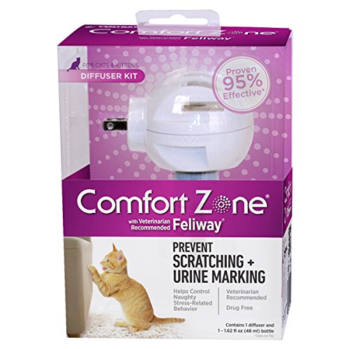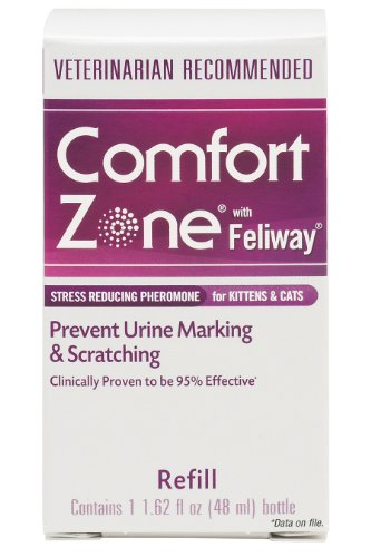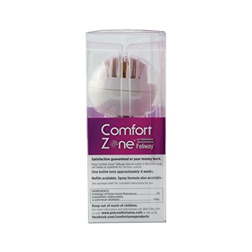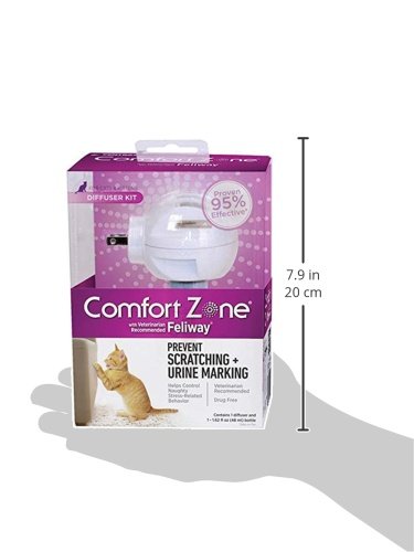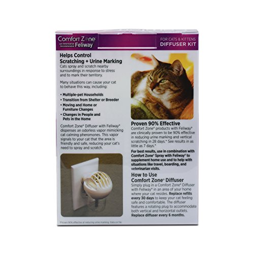 Reduces or completely stops stress-related behavior including: urine marking, vertical scratching, loss of appetite, reduced desire to play or interact and other stress-related behaviors. Helps comfort cats in stressful situations such as: being alone in the house, visitors to the home, new pet or family member, moving to a new home, visits to the veterinarian, adjusting to a new environment, multiple cat households.Feature