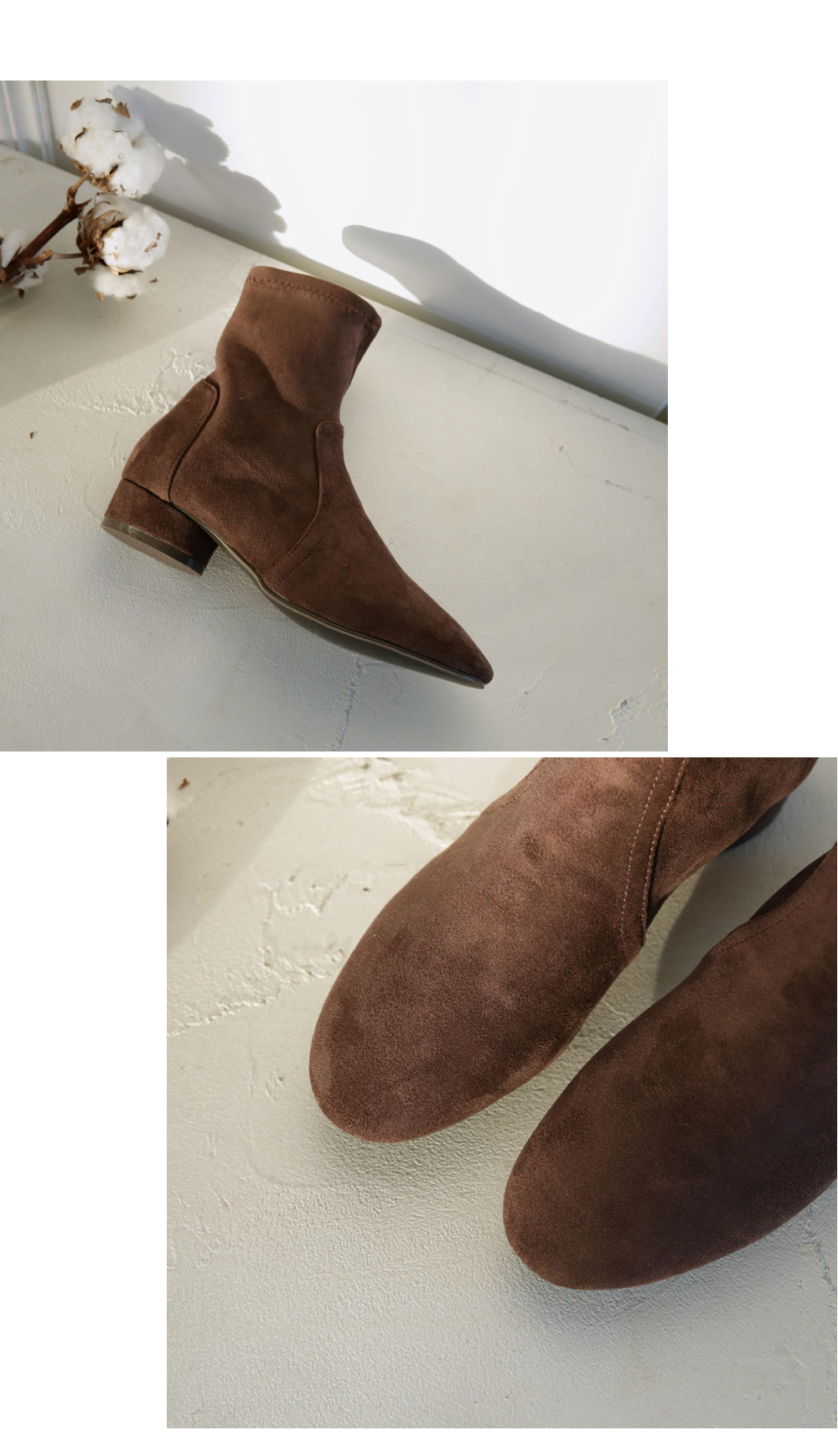 Round Ankle Boots. 동글동글 라운드진 쉐입이 큐티하게 착화되고 로우굽으로 부담감 없이 신기 좋은 데일리 앵클부츠입니다.