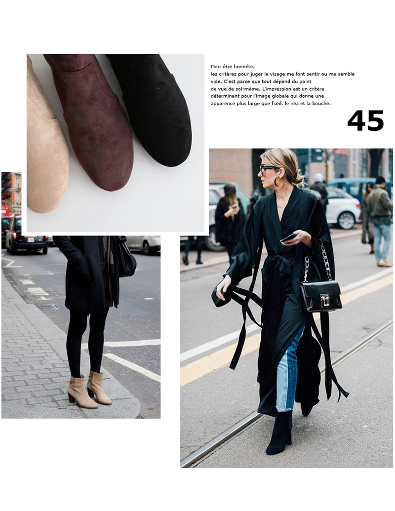DETAILS - 소재 : 인조스웨이드 - 컬러 : beige,brown,black - 피팅감 : 정사이즈 / 무게 : 보통인편 - 착화감 : 입구에 약간의 스판성으로 신고벗기 편해요 - 모델피팅 : 235