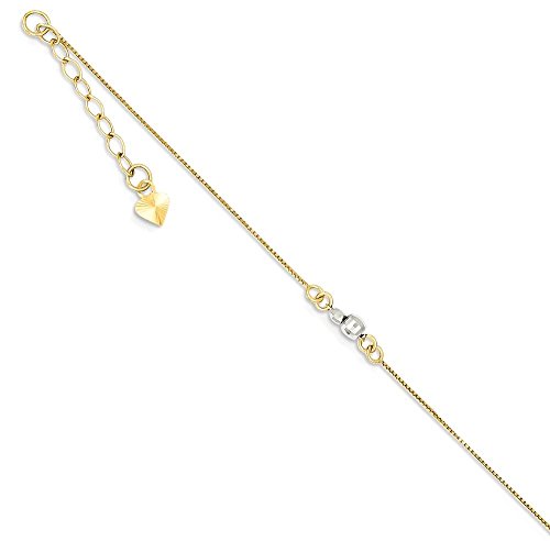 -. Title : ICE CARATS 14k Two Tone Yellow Gold Mirror Bead Anklet Ankle Beach Chain Bracelet Ball Beadsed Fine Jewelry Gift Set For Women Heart