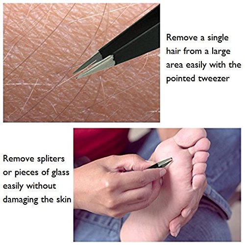 GUARANTEED CLEARER, SMOOTHER BEAUTIFUL SKIN: Say goodbye to pesky stray hairs with these PRECISION tweezers. You will notice a dramatic difference in performance compared to store bought tweezers. With a Slip-Free, yet Sleek design, you can pluck eyebrow hairs, ingrown hairs, facial hairs, splinters, glass and even the smallest individual hair EFFORTLESSLY.