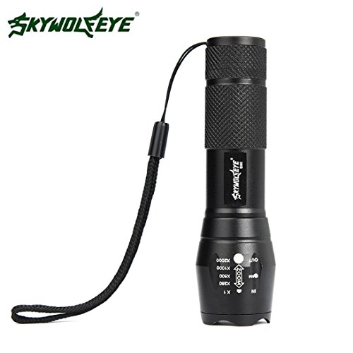 Description: Our Sky Wolf Eye Cree XM-L Q5 3500lm 3-Mode Waterproof Lotus Head LED Flashlight Suit Black is a cost-effective trade-off. Powered by 18650 battery, it is stable for long-term working. Its most outstanding feature should be the variable focus, so you can adjust it to meet your demand. Also, with a strap, it is convenient to carry. Most all, this flashlight is suitable for household, outdoor activities, hiking, night fishing, camping, and sailing etc. Seize the chance if you want to buy a high performance and bright light flashlight! Features: Non-thermal radiation, safe and stable, reliable Anti-reflective aluminum alloy coating makes it durable for long-term use A strap is given for convenient carrying Featured with variable focus and waterproof performance Perfect suitable for household, outdoor activities, hiking, night fishing, camping Specifications: Brand: Sky Wolf Eye Emitter Brand: Cree LED Type: XM-L Emitter BIN: Q5 Light Color: White Casing Color: Black Material: Aluminum Alloy Lumen: 3500 Lumens Power Supply: 1 x AAA Battery (Not Including) Mode Arrangement: high / middle / SOS Lifespan: 100000 Hours Switch Type: Clicky Switch Location: Tial Strap/Clip: Strap Included Zoomable: Yes Dimensions: 108*23*18mm Weight: 56g Package Includes:1 x Sky Wolf Eye CREE LED XM-L Q5 Zoomable Flashlight Torch(Not including Battery) 0
