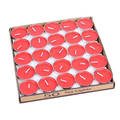 50 Pack Tea lights Candles - Unscented - Smokeless - 2 Hour Burn Time - Decoration for Wedding, Party, Dating and Festival Celebration (Red)