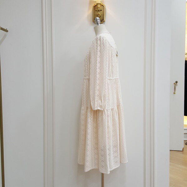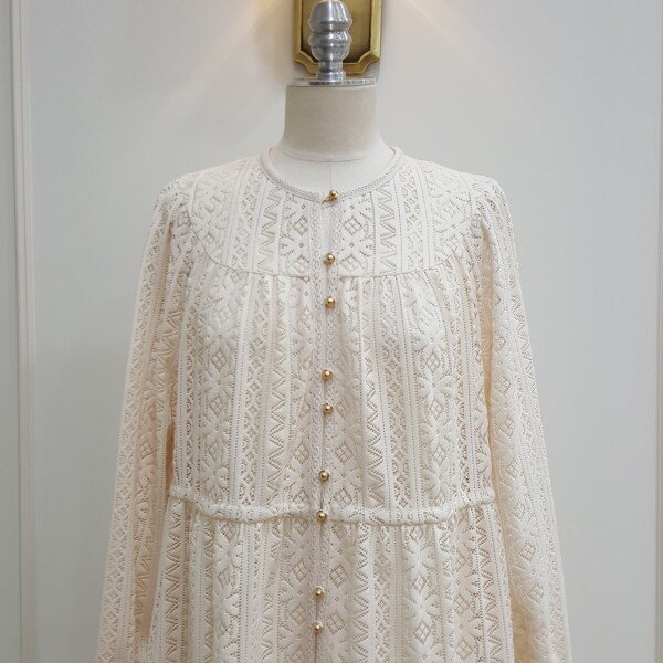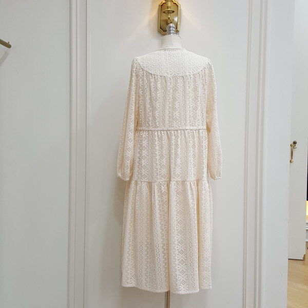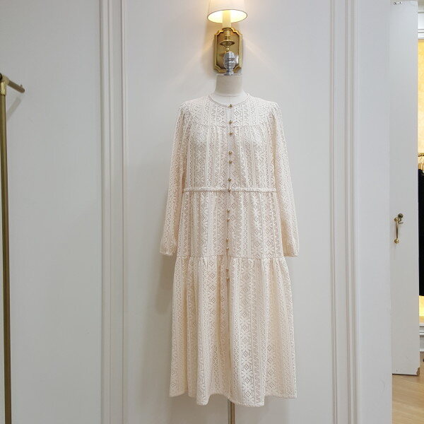 레이스로 된 롱원피스. 가슴라인에 단추를 달아 포인트를줌.