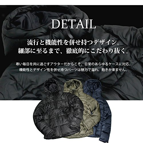 -. Feature : カラー展開:ブラック カーキ ネイビー ※お使いのモニターやプラウザの環境によって多少画像の色が変わってみえることがございます。 / サイズ:M 実寸:着丈65cm 身幅51cm 肩幅43cm 袖丈65cm / br/>サイズ:L 実寸:着丈67cm 身幅53cm 肩幅44cm 袖丈67cm / サイズ:LL 実寸:着丈69cm 身幅55cm 肩幅45cm 袖丈69cm / 素材: (表地)ポリエステル100% (中綿)ポリエステル100% (裏地)ポリエステル100% (リブ部分)ポリエステル100%