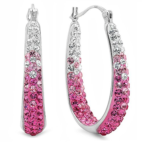 These beautiful hoop earrings for her feature rows of SWAROVSKI CRYSTALS on the inner and outer edges for maximum sparkle in any direction. The earrings are fashioned in sterling silver and have secure snap-lock backsFeature