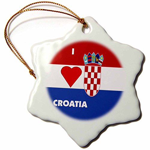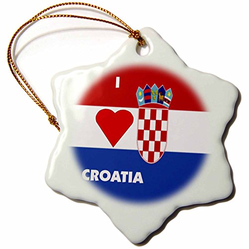 3dRose orn_55208_1 I Love Croatia Ii-Snowflake Ornament, Porcelain, 3-Inch