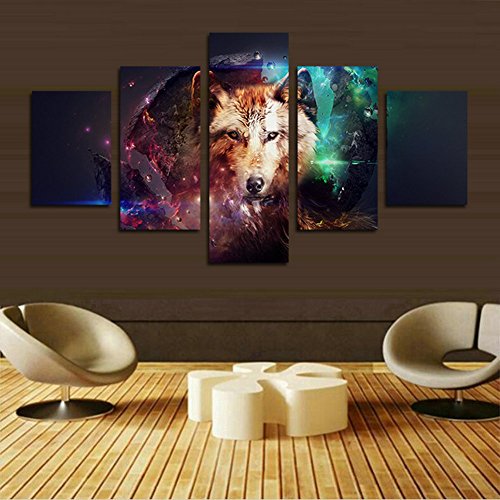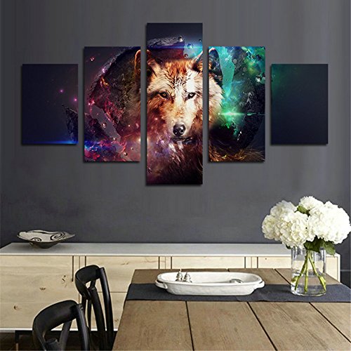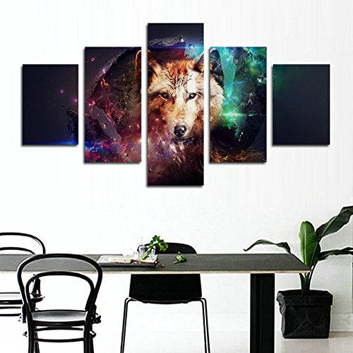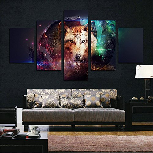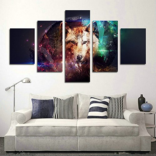 -. Title : H.COZY 5 Piece Canvas P.R.Int Abstract Colorful Wolf Oil Paintings for Home decoration Unframed far160 50 inch x30 inch