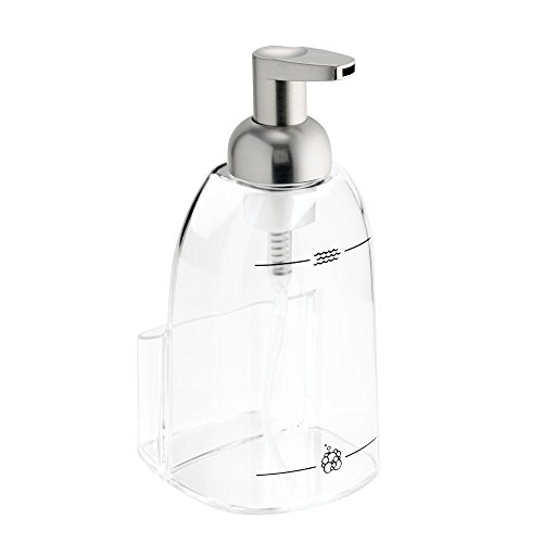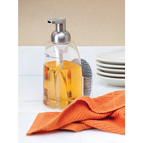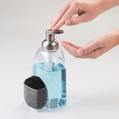 InterDesign Sinkworks Foaming Soap Dispenser and Sponge Caddy - Kitchen Sink Organizer, Clear/Brushed Nickel