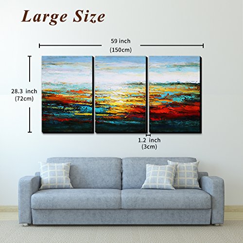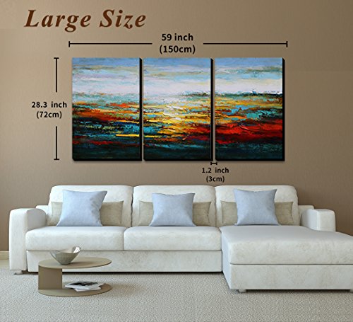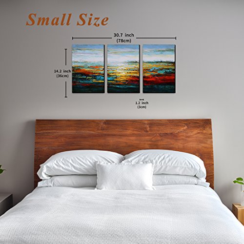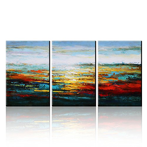Since it arrives ready to hang, you can beautify and liven your wall immediately. Each painting is wrapped and stretched onto a solid fir wood frame with a hook on each panel for easy hanging. There are two sizes to choose from to fit the specific area on your wall, and each set includes THREE PANELS. Size: 14.2 x 9.4 inch x 3pcs (36 x 24cm), 28.3 x 18.9 inch x 3pcs (72 x 48cm). As each painting is 100% hand-painted, your actual pieces may be slightly different than the product image.