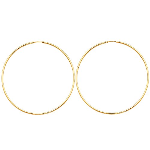 14K Yellow Gold 1.5mm Thickness High Polished Extra Large Endless Hoop Earrings (2.4" or 60mm Diameter)