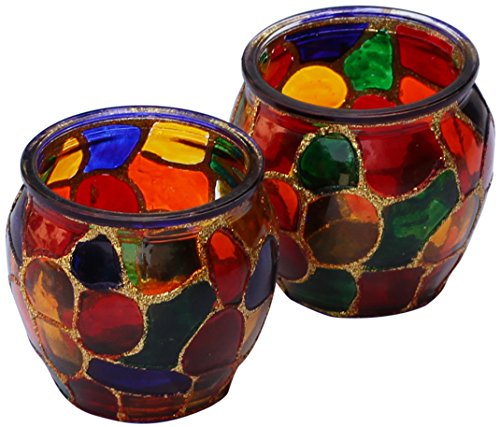 Set of 2 - Pot-shaped, this colorful candle-holder is decorated with glitters