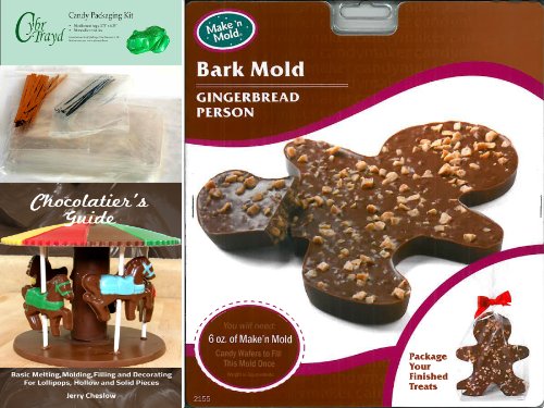 Cybrtrayd Gingerbread Bark Chocolate Mold with Chocolatier's Bundle of 50 Cello Bags, 25 Gold and 25 Silver Twist Ties and Chocolatier's Guide