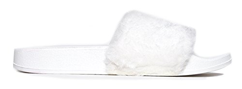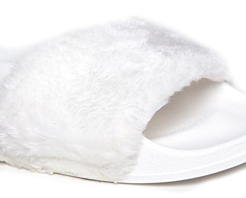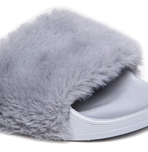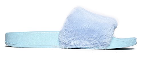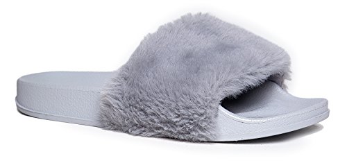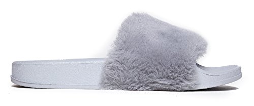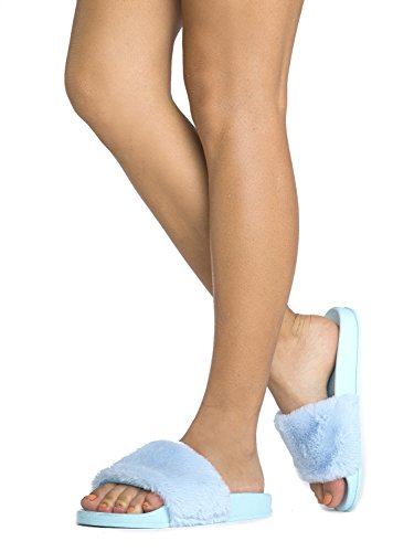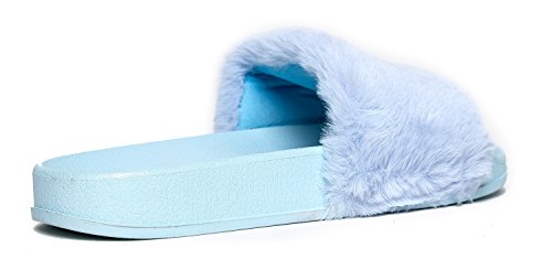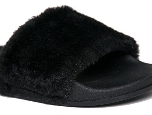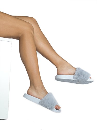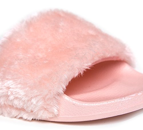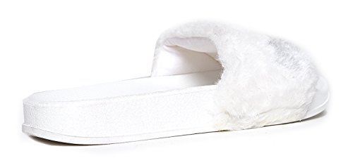Cute Easy Slip On Sandal - Trendy Low Open Toe Knotted Flat - Soft Fuzzy Slide - Satin Ribbon T...