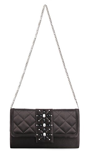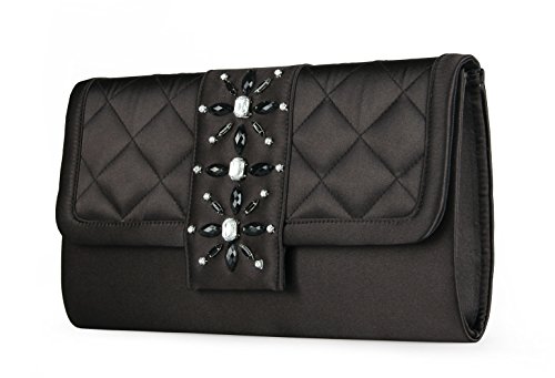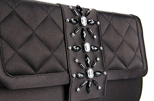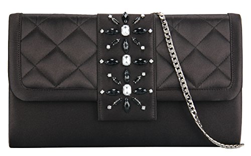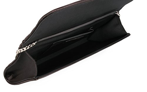It made from satin material. Front of bag features handmade beaded brooch with fold over flap. Secure magnet closure can hold your valuable items inside.Roomy space for easily fit your cell phone,wallet,lipstick,car keys or other small items.Comes with a silver delicate wide chain,this bag can be carried in hand as clutch handbag or carried at shoulder as shoulder bag,cross- body bag.Suitable for most occasions, such as party, ball, prom,daily appointment and so on.