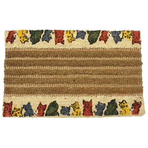 -. Feature : Shake, brush or vacuum this all weather coir mat to clean / Colorful cat doormat design spices up home entrances or backyard decor / Hand-Knotted "kitty cat" cocomat a fun entrance mat for your home or garden / An eco-friendly coconut mat that removes dirt and dust from shoes for cleaner floors / Natural coir fiber makes these scraper door mats an eco-conscious addition to any home