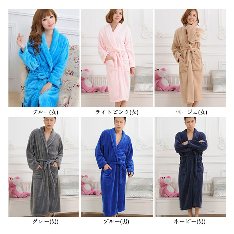 | 男女揃うの大正解。お肌にやさしいバスローブです!暖かく、サラサラ、ふわふわ肌に優しく。吸水性抜群だから羽織るだけで体の水分をサッと吸水!軽くて肌触りがよくとても暖かいので、ルームウェアでリラックスできる!入浴後のリラックスタイムをゆ?ったりとお過ごしくださいませ♪♪♪新婚旅行や結婚記念日や誕生日などのプレゼントとして絶対オススメなアイテム! | |