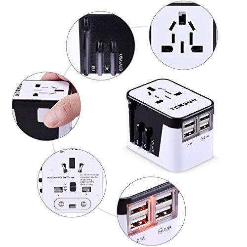 Tensun International Power Adapter USB Charger : 4-Port with5V/Max. 3.5A (Smart 2-Port USB Max Output 2.4A;Other 2-Port USB Max Output 2.1A)