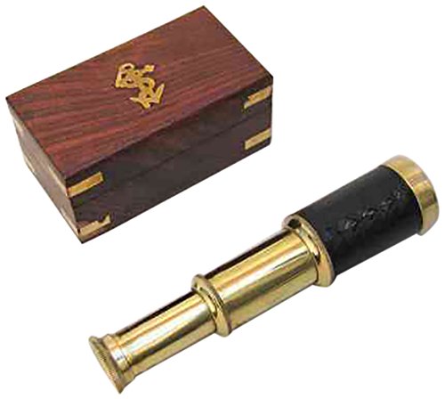Benzara Brass Telescope Pullout Wood Box Pride of Marine Collectors