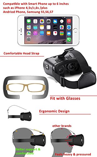 -. Binding : Wireless Phone Accessory -. Brand : CUDEVS -. Feature : Wonderful experience: It is a great supplement and extending device of the network set-top box and bring you wonderful experience of watching movies and playing games / Cardboard compatible: Featuring Magnetic Controller Trigger Button to Control your VR Game, works with numerous cardboard apps, including games, video apps, and more. Start by testing out what Cudevs Goggles is capable of with the Cardboard apps / Adjustable pupil distance and sight distance : You can slightly adjust the position of the spherical resin lens through moving the button on the top of the 3D VR GLASSES so as to get a better experience of watching movies. / Easy to use: Put your cell phone into the relative slot of the item. And then, you can greatly enjoy the 3D movies or 3D games / Suitable for most of smart phones: Fits most of 4-6 inch mobile smart phones -. Label : CUDEVS -. Manufacturer : CUDEVS -. PackageQuantity : 1 -. ProductGroup : Wireless -. ProductTypeName : WIRELESS_ACCESSORY -. Publisher : CUDEVS -. Studio : CUDEVS -. Title : CUDEVS 3D VR Glasses, 3D VR Headset Virtual Reality Box with Adjustable Lens for iPhone 5 5s 6 6s plus Samsung S5 S6 Edge Note 4 5 6 and 3.5-6.0 inch Smartphone for 3D Movies and Games (Single VR)