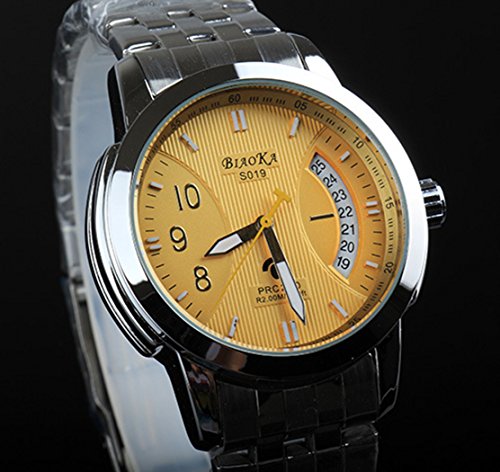 -. Feature : スピードメーター保彷彿せるデザインのメカニカルウォッチ。 秒針のイエローカラーがスポーティーでアクティブな印象を与えます。 ビジネスシーンにもとっても似合い、オンオフ両方でも使えます。 / 駆動方式 : 機械式 自動巻(手巻付) 【メカニカル / オートマチック】 / 材質 / ケース : 316Lステンレスケース、ガラス : ミネラル高強度ガラス、ベルト : 金属ベルトタイプはステンレス、黒革調ベルトは合皮 / サイズ / 横幅 : 40mm *竜頭除く、厚み15mm 、バンド幅 : 20mm 、 バンド周囲 最大225mm(留め金含む) / その他特徴 / 防水 : 30m 生活防水、シースルーバック、夜光(時針・分針)