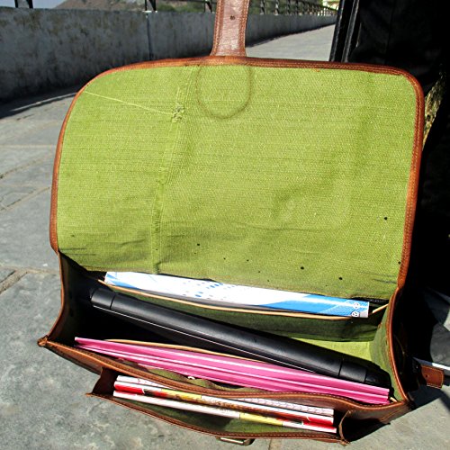 -. Binding : Electronics -. Brand : IndianHandoArt -. Color : brown -. Feature : Size: 16" x 12" x 5" / A Gift For Men and Women. For Your Loved Ones and College Students. / Perfect for Tablet / macbook / Laptop. / Strong & Durable: Brass Fittings with brass Buckles. Green Canvas Lining from Inside. / Premium Goat Leather. -. Label : IndianHandoArt -. Manufacturer : IndianHandoArt -. PackageQuantity : 1 -. ProductGroup : PC Accessory -. ProductTypeName : CARRYING_CASE_OR_BAG -. Publisher : IndianHandoArt -. Size : Large -. Studio : IndianHandoArt -. Title : IndianHandoArt 16" Inch Leather Bag Leather Messenger Bag for Men and Women Crossbody Bags for Men and Women