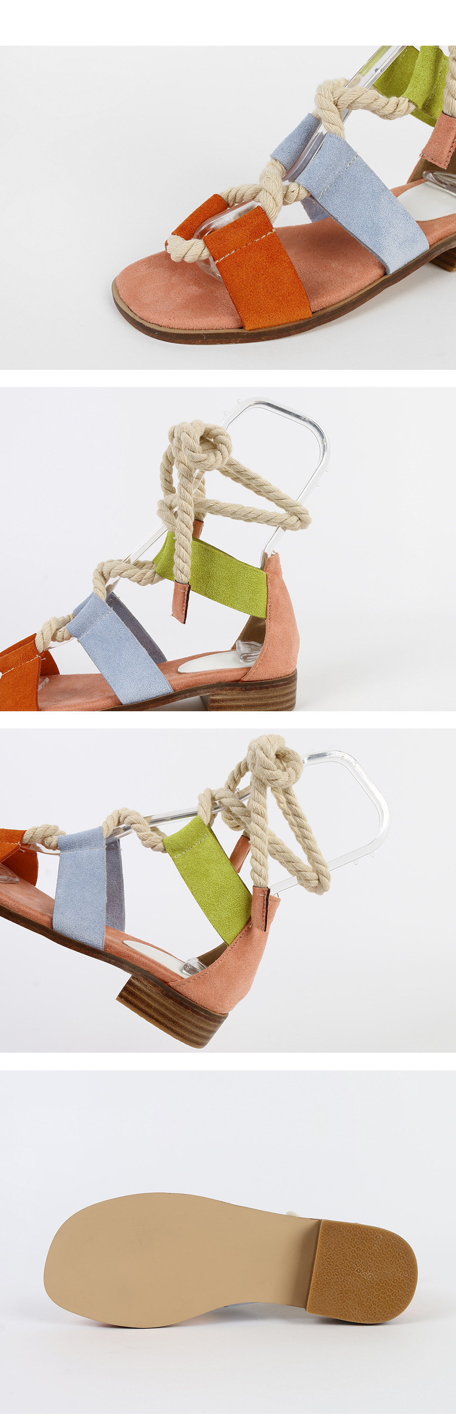 DETAILS - 소재 : 인조스웨이드 패브릭(로프) - 컬러 : pink - 피팅감 : 정사이즈 / 무게 : 보통인편 - 착화감 : 쿠션바닥창으로 편안해요 - 모델피팅 : 230
