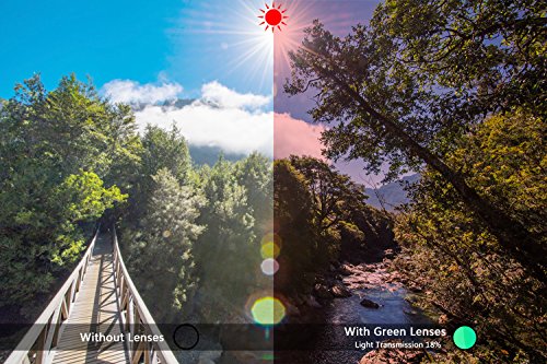 - Polarized lenses reduce reflective lights from the surfaces of water, snow or rough objects, display accurate or hidden items