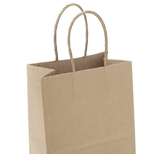 Halulu 100pcs 5.25"x3.75"x8" Brown Kraft Paper Retail Shopping Bags with Rope Handles