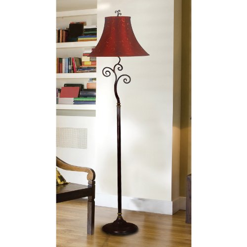 - Feature : Fashionable floor lamp adds artistic flair to any bedroom, foyer, or living space / Sturdy, bronze-finished base features modern scroll design / 3-way switch for flexible lighting options; requires 150-watt medium-base bulb / 17-inch-wide bell-shaped fabric shade in deep red with gold accents / Measures 62 inches high and 17 inches wide