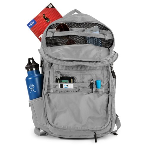 - Feature : TSA compliant external laptop compartment on this backpack unzips and lies flat for going through security without removing your laptop / Padded tricot lined backpack compartment that fits up to a 17" MacBook Pro / Timbuk2's trademarked Swing Around Access; grab your laptop or your iPad without taking off your backpack / Fine weave ballistic with the Timbuk2 color and durability you would expect / Backpack features huge internal volume for your gear with additional compartments and pockets for iGadgets, cables etc.