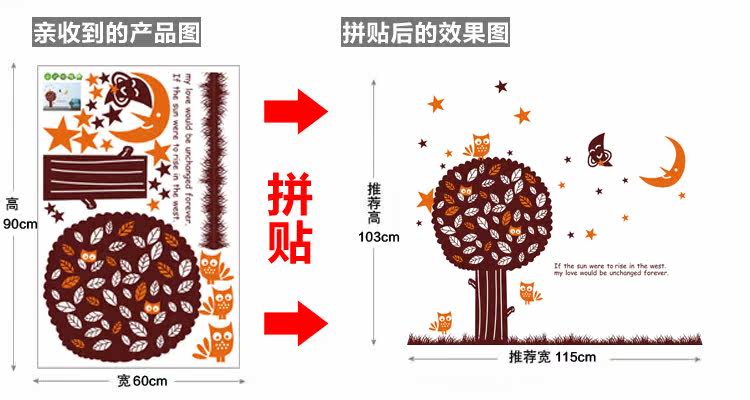 Wall Stickers Material: environmental protection PVC, the back with plastic, removable Pricing Unit: set Wall Sticker Style: Plane Wall Stickers size: detailed dimensions refer to the effect of Image (unit: cm) Sizes, "you receive the goods and typesetting" size and "collage after size reference" Our tile size for reference only, you can combine according to room size freedom