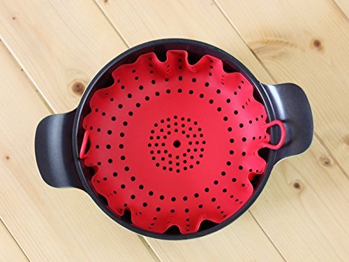 (Korea)/Kitchen Dining/Cookware Baking/DIRECT FROM USA/Cozymom Korea Steam Stovetop Vegetable Steamer 10 Inches Silicone Steamer-orange color