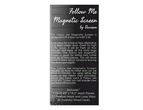 Allows hands free opening of doorways and the extra strong magnets instantly snaps shut right behind you. Anyone can use the Follow Me Magnetic Screen including children and pets. Let that beautiful summer breeze flow through your house without the worry of bugs and flies following you in.Make your summer as simple as possible