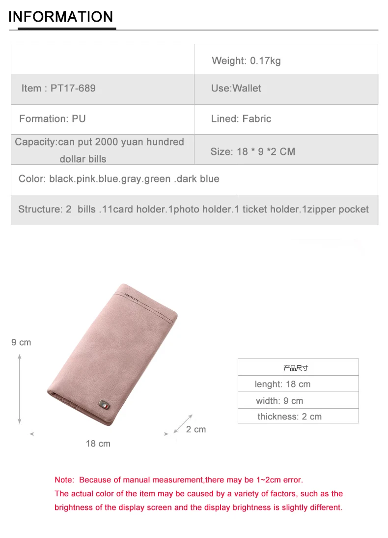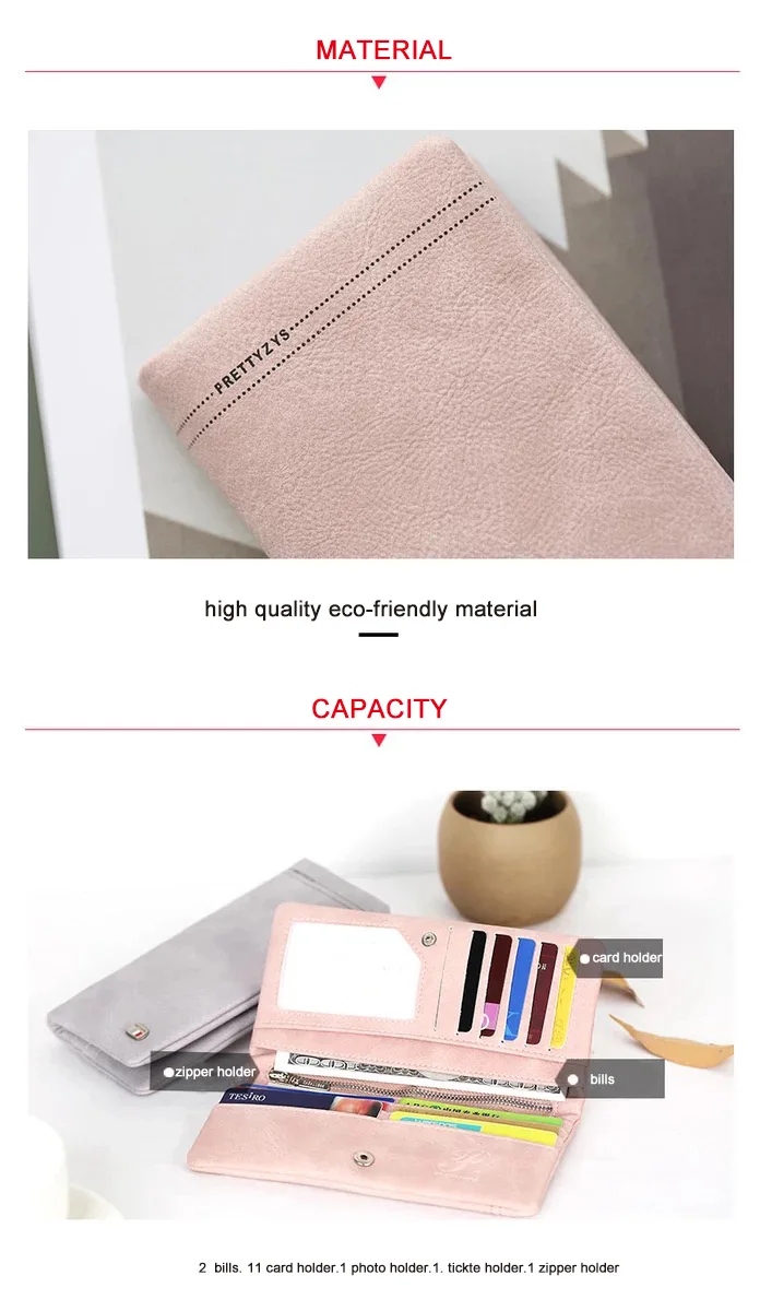 Inner structure:2 bills. 11Card holder.1 zipper pocket.1 photo holder.1 ticket holder