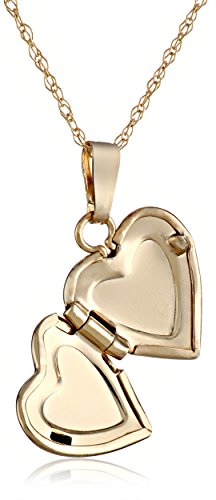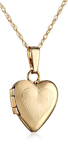 14k yellow gold necklace for baby or child featuring heart locket with satin center and polished edge.