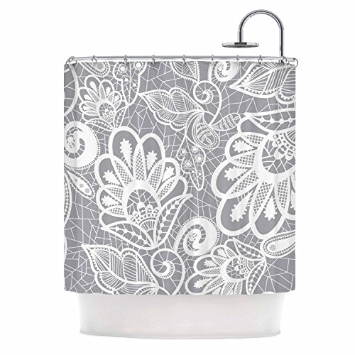 KESS InHouse Petit Griffin Lace Flower Gray White Shower Curtain, 69" x 70"