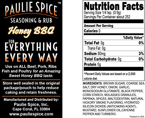 -. Title : Paulie Spice : Sweet Honey BBQ Gourmet Seasoning and Rub For: Meat, Ribs, Rib, Chicken, Pork, Steak, Wings, Turkey, P.R.Ime Rib, Fish, Seafood, Grill, Grilling, Barbecue, Smoker, Dry, Rubs, Seasonings