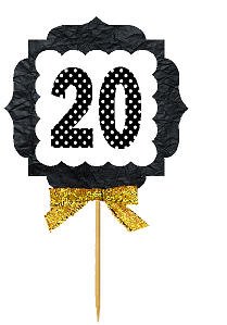 20th Birthday / Anniversary Gold Ribbon Hand Crafted Novelty Cupcake Decoration Toppers / Picks -12ct